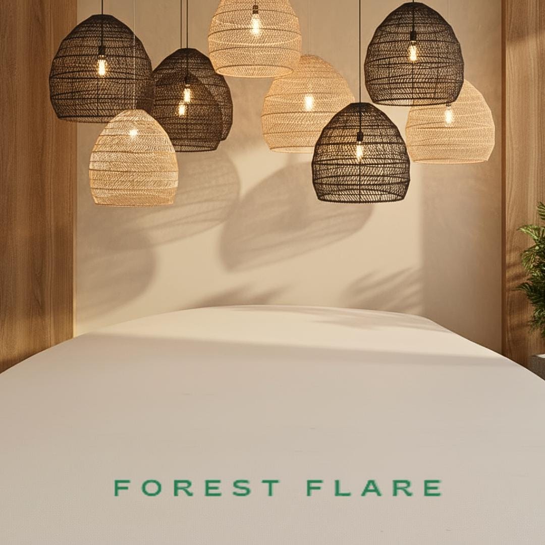The Forest Flare presents Rattan Lamp shows a natural take on classic pendant lighting. It has a teak top and organically shaped handwoven rattan details all down the side, crafted according to ancient Javanese technique. Available in various sizes and in natural or charcoal finish. Hang alone, or create a cluster of pendants, mixing various sizes and shapes.