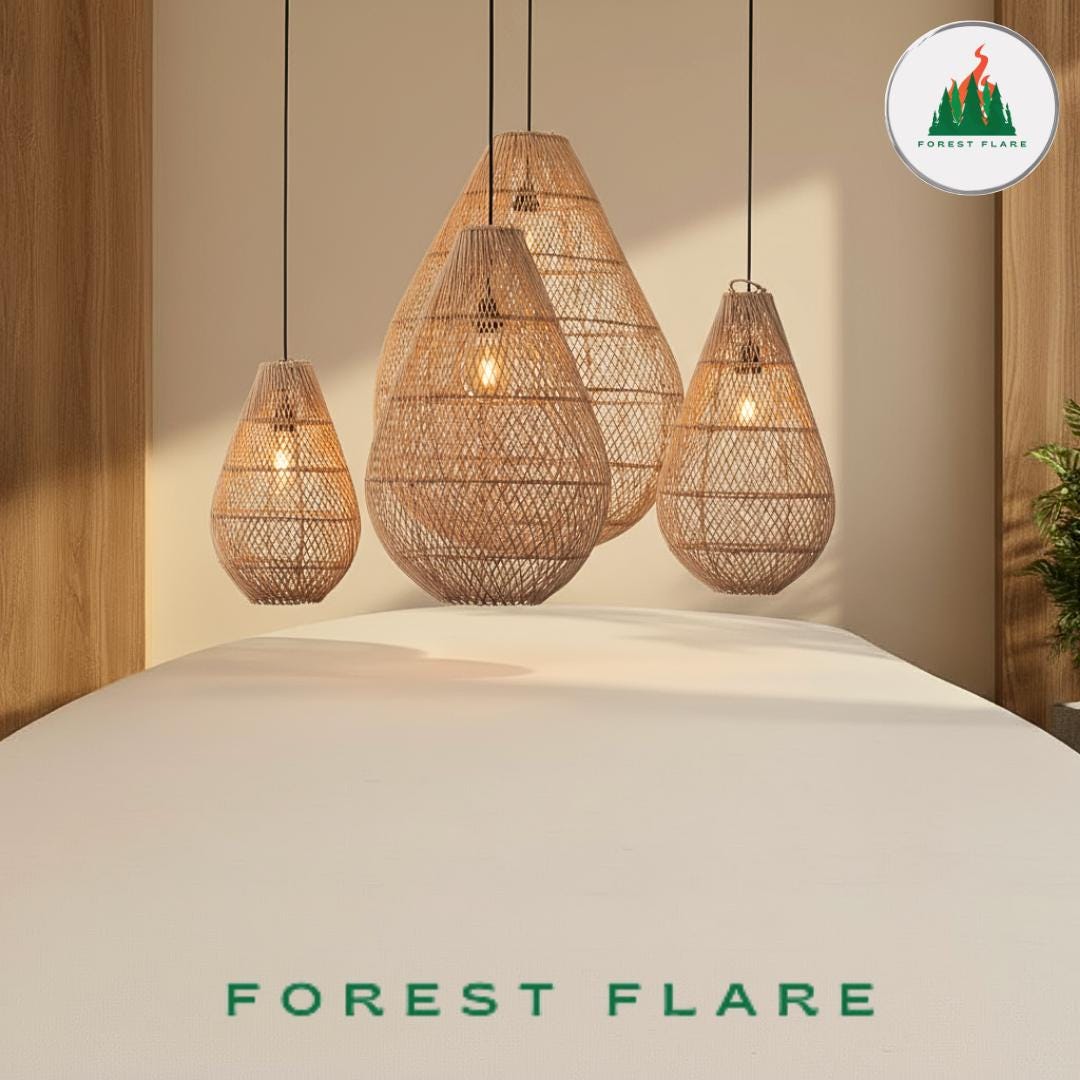 Forest Flare Introducing our Retro Rattan Woven Pendant Lampshade — a perfect blend of vintage charm and eco-friendly craftsmanship that brings warmth and texture into any space.