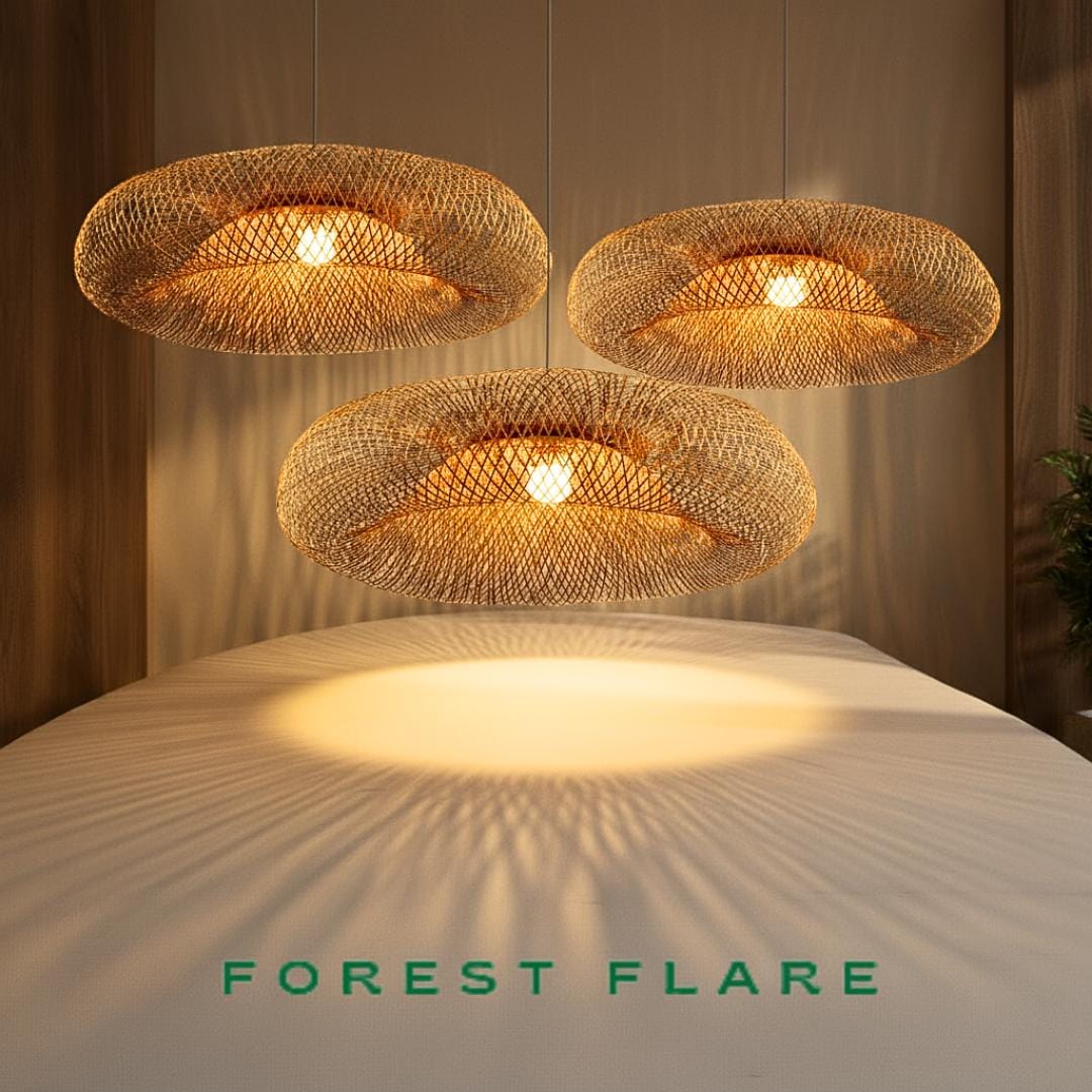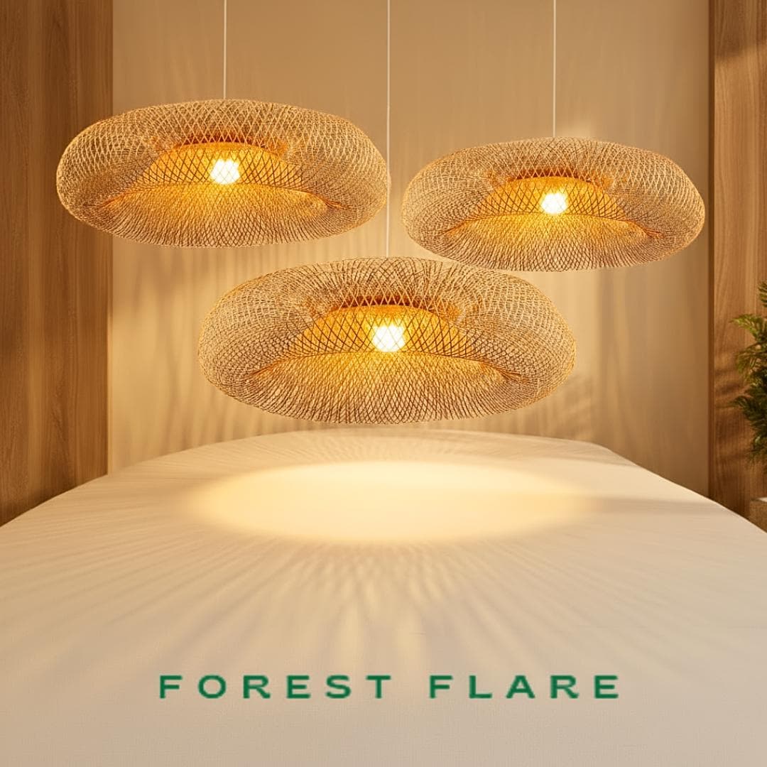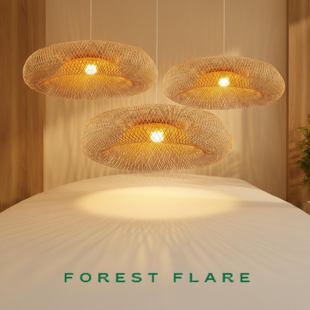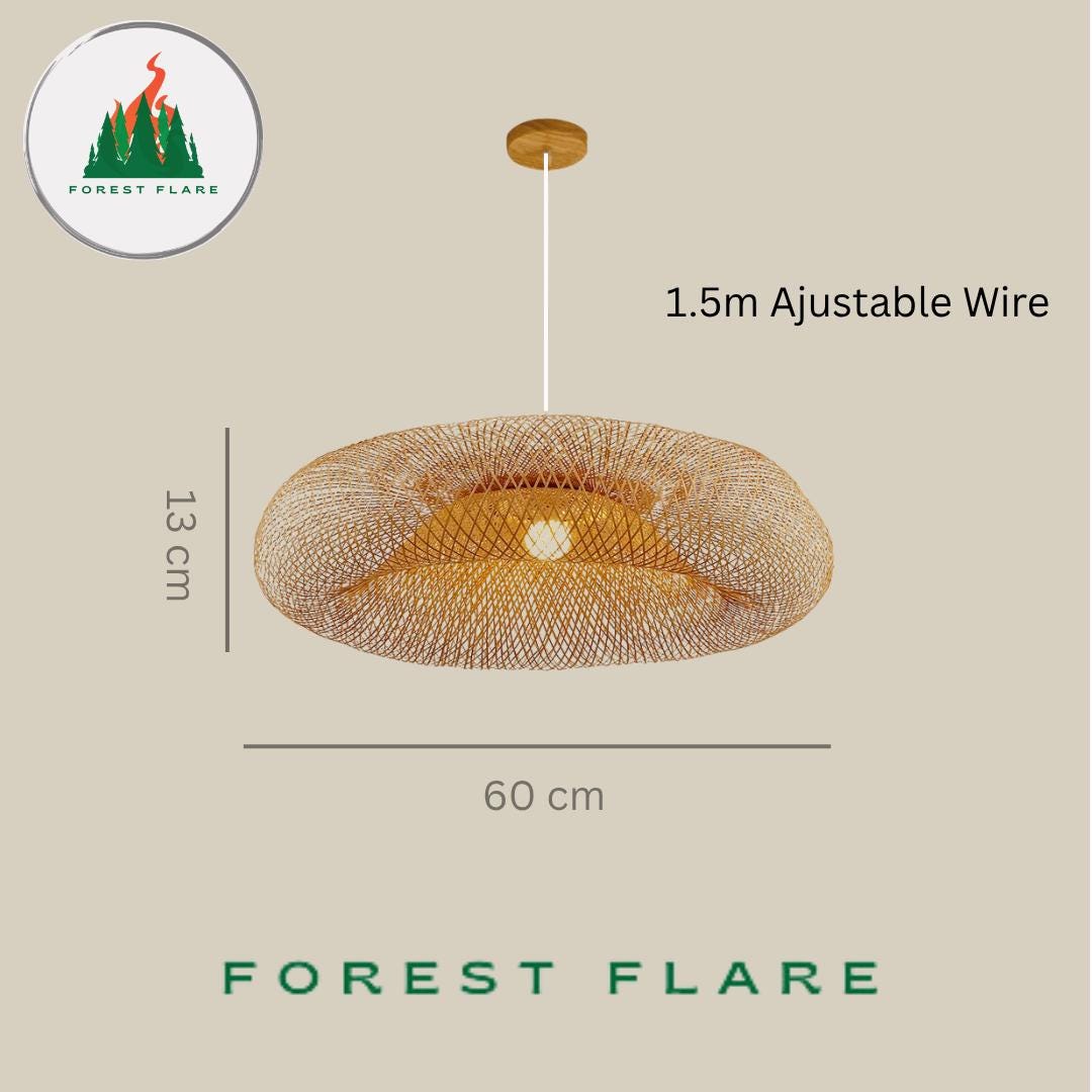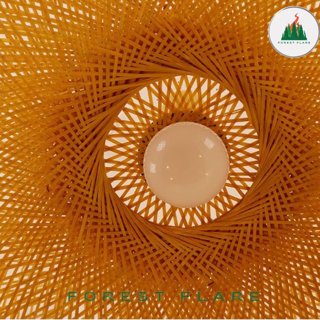 ** Material: Sustainably harvested bamboo + rattan binding, finished with durable lacquer for indoor use. ** Design & Style: Clean, minimalist silhouette with natural texture — perfect for Scandinavian, coastal or boho-chic interiors. ** Sizes Available: Diameter approx 40 cm / 50 cm / 60 cm / 75 cm / 95 cm — choose your size. ** Light & Ambience: Creates soft, warm diffusion of light — ideal for living rooms, dining areas, bedrooms, hallways or home offices. ** Eco & Handcrafted: Each piece is hand-woven by skilled artisans; natural variations in colour & texture make each unit unique. ** Installation Info: Fits standard ceiling electrical box; chain or cord suspension included. For safe use ensure correct wiring by a qualified electrician.