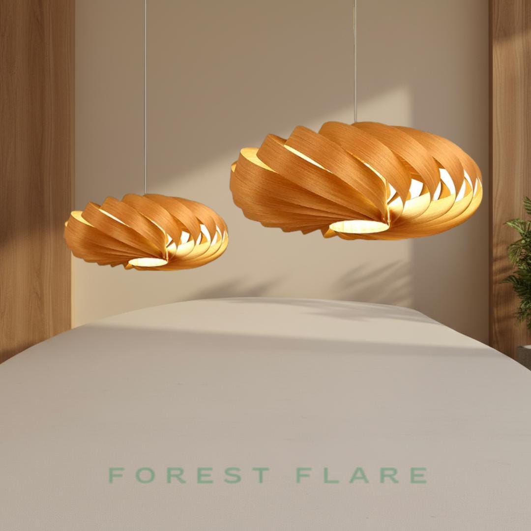 * Handmade with premium oak veneer wood * Minimalist Wabi-Sabi / Japandi aesthetic * Soft, warm lighting ideal for cozy spaces * Lightweight and durable construction * Suitable for kitchen islands, dining rooms, cafés, hallways & modern interiors * Available in multiple sizes (custom orders welcome)